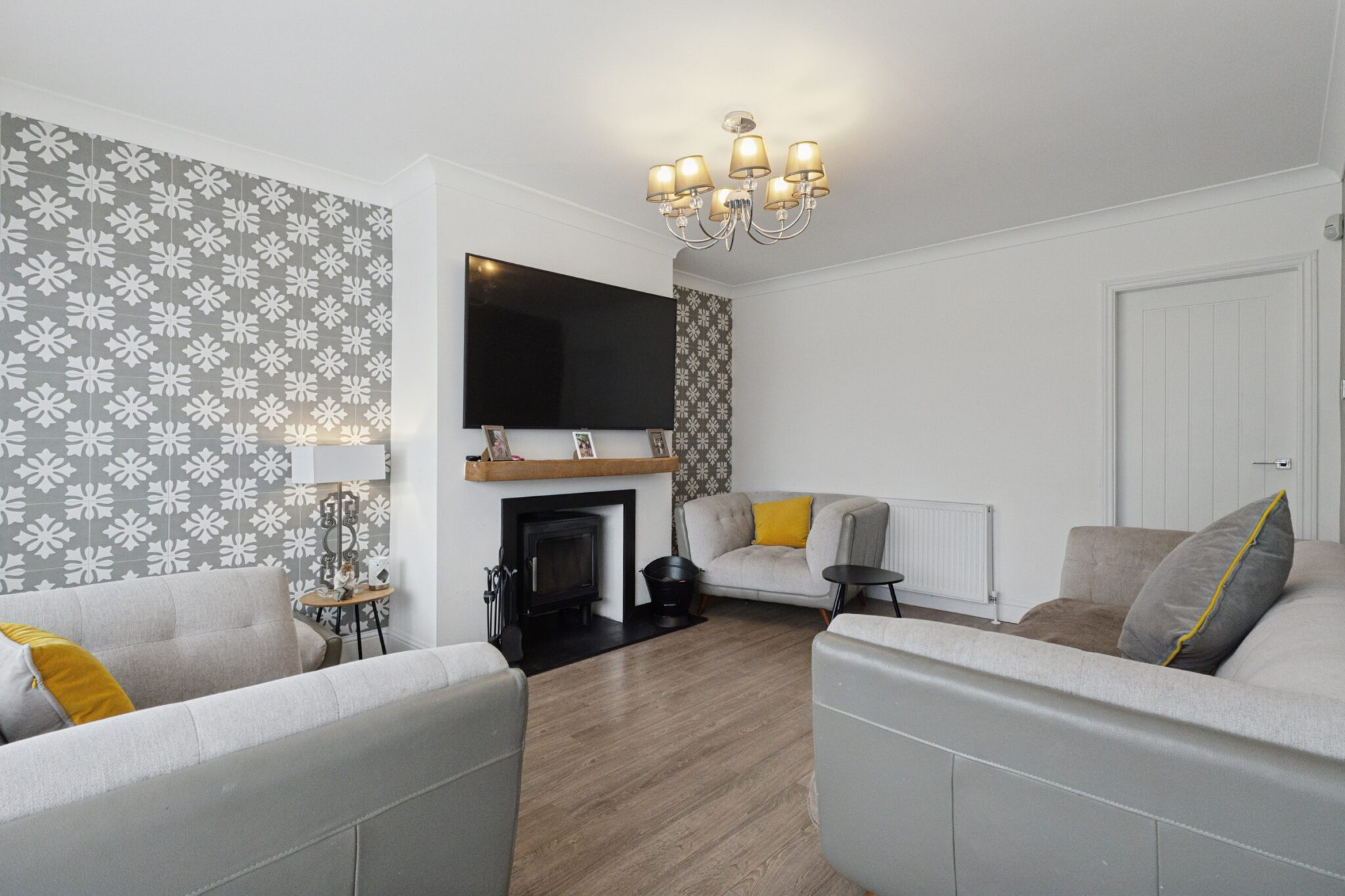 The property comprises: a warm and welcoming entrance hallway with a downstairs w/c, a bright modern lounge with a gorgeous wood-burning fireplace, a beautiful fully fitted dining kitchen with a range of wall and floor-mounted units with integrated and freestanding appliances. There are two great storage cupboards built into the kitchen, one of which goes under the staircase, and there is a rear door providing access to the garden.